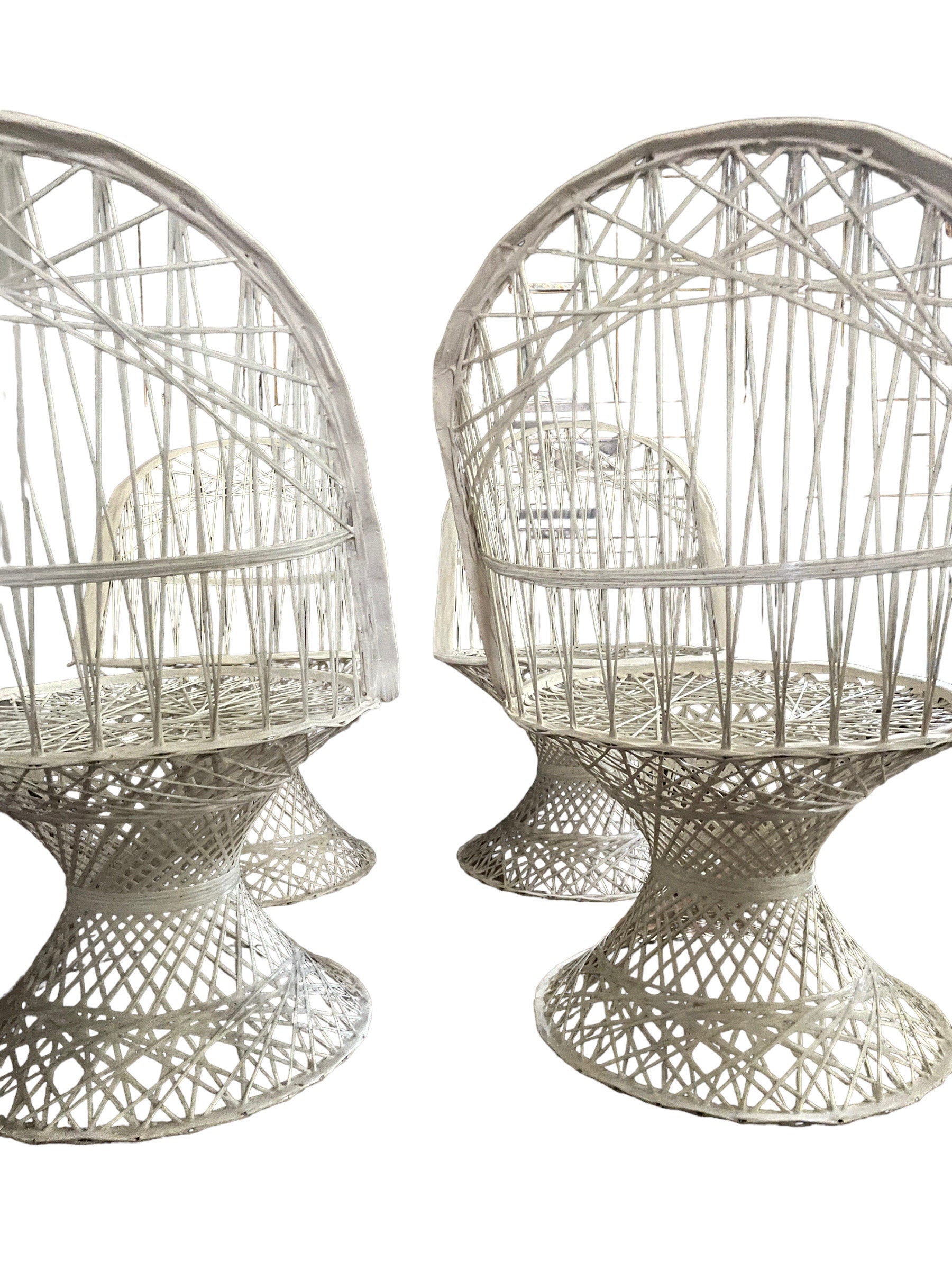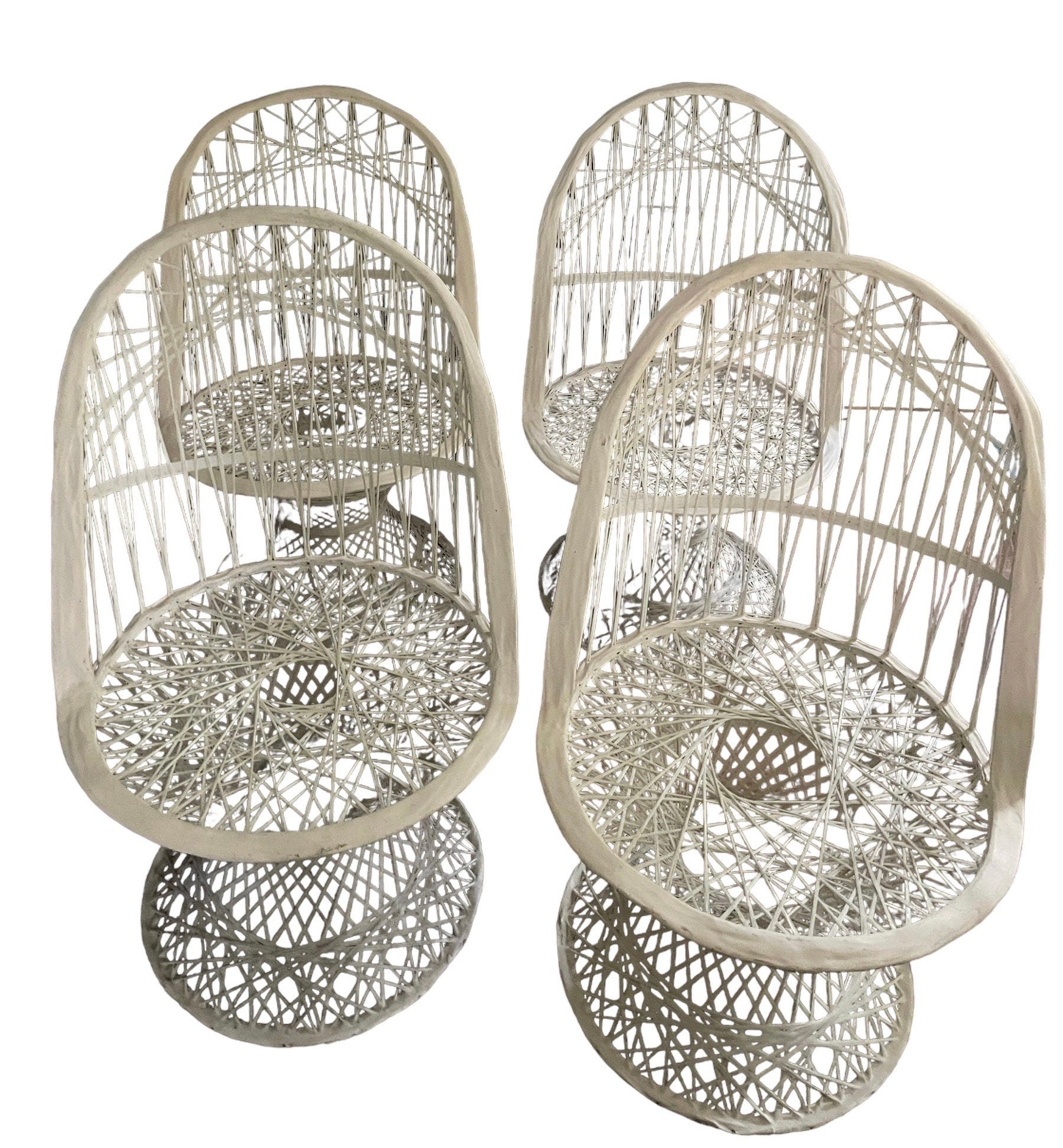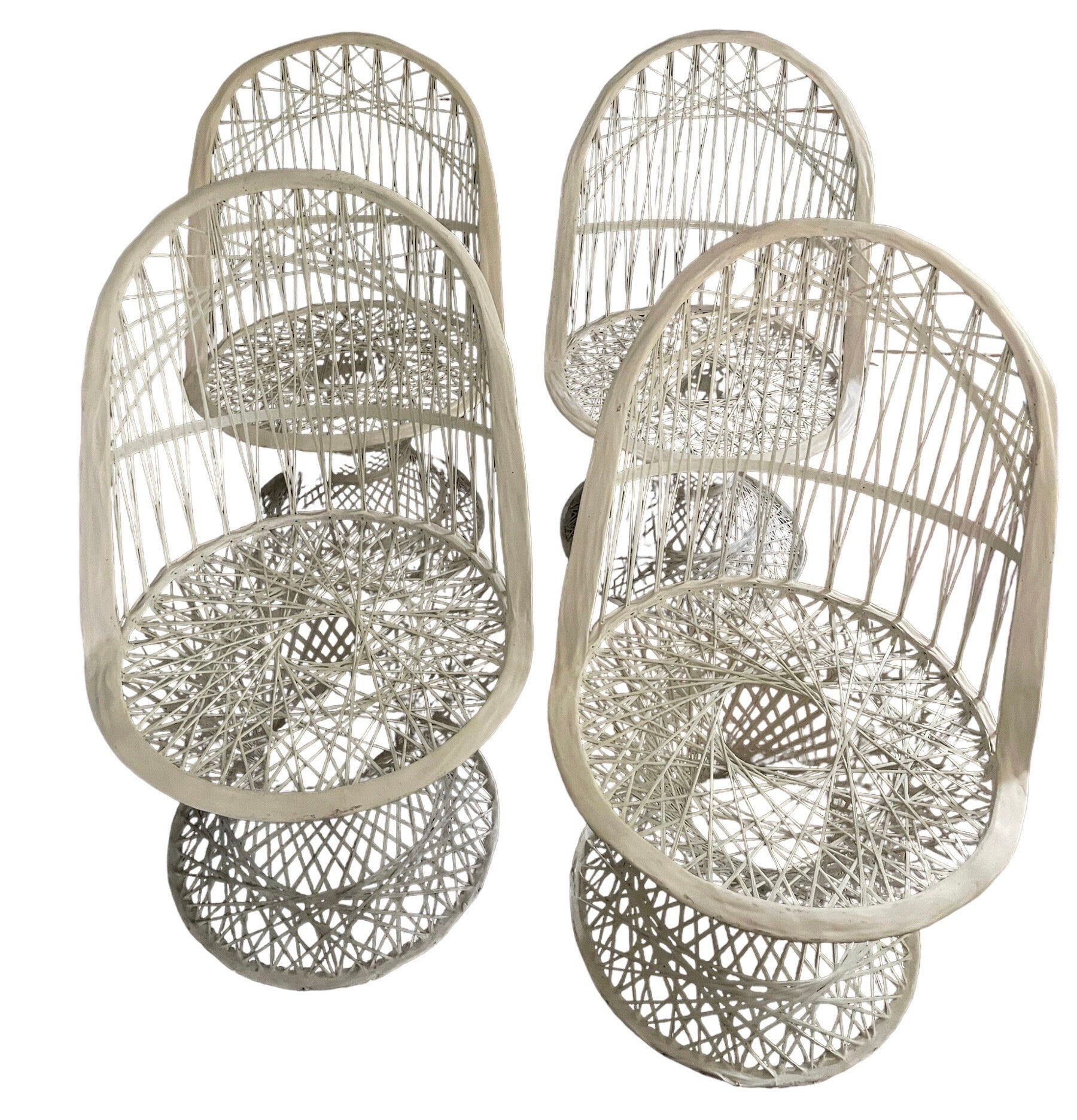 1950s Mid-Century Russell Woodard White Spun Fiberglass Dining Chairs Patio Set Vintage Russell Woodard Set of 4