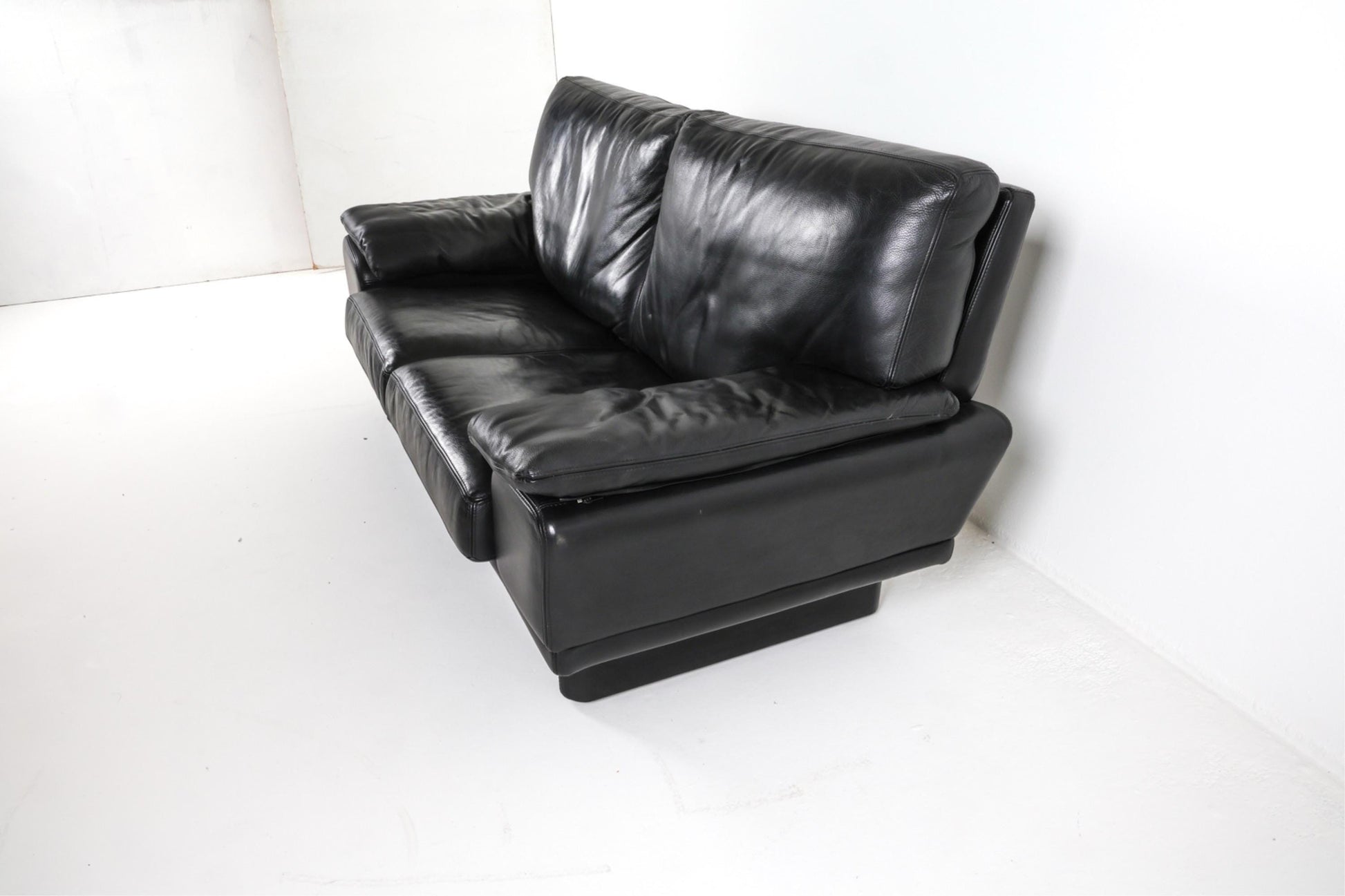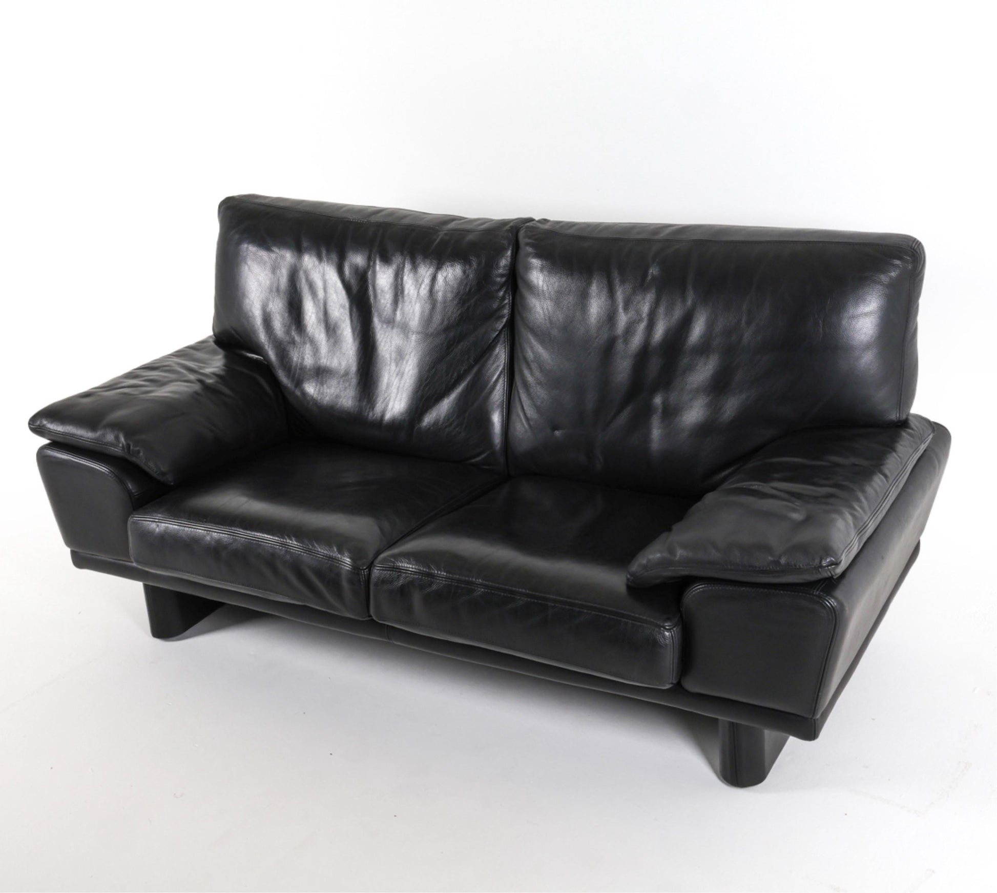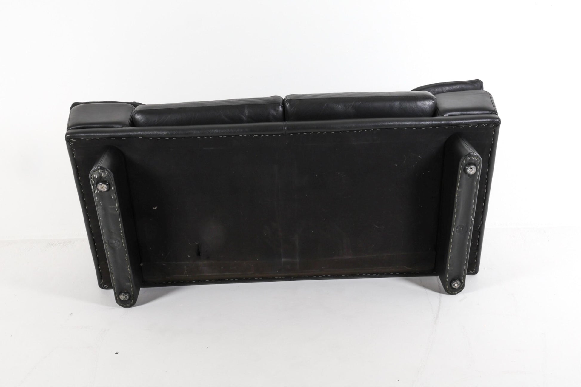 Black Leather Sofa Couch Postmodern Black Vintage Leather Postmodern Living Room Set Black Leather Sofa style of Roche Bobois Black Leather