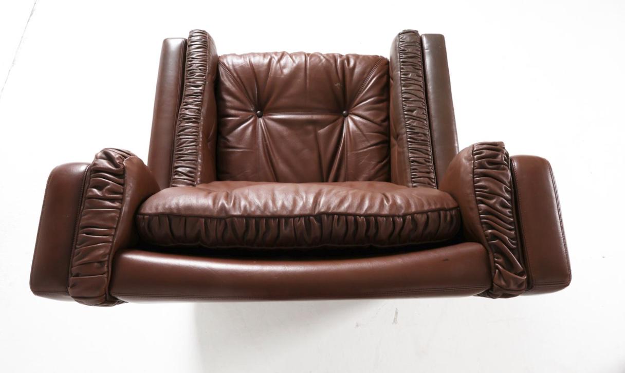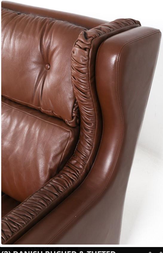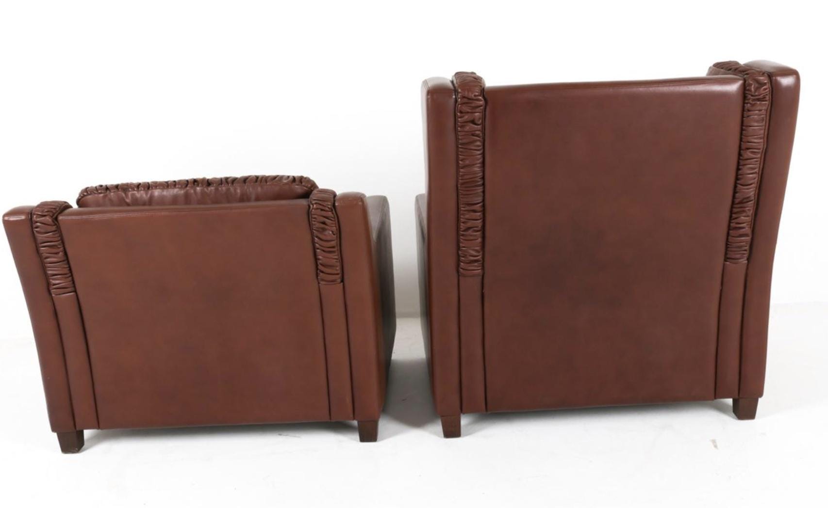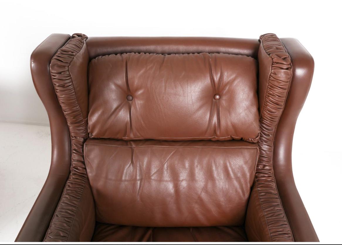 Pair Leather Armchairs Brown Leather Winged Back Arm Chairs in the Style of Børge Mogensen Danish Armchairs Brown Leather Pair
