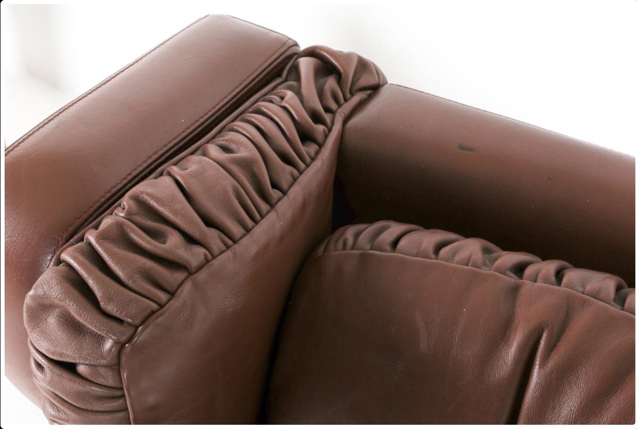 Tufted cushions with ruched outer edges to upholstery.