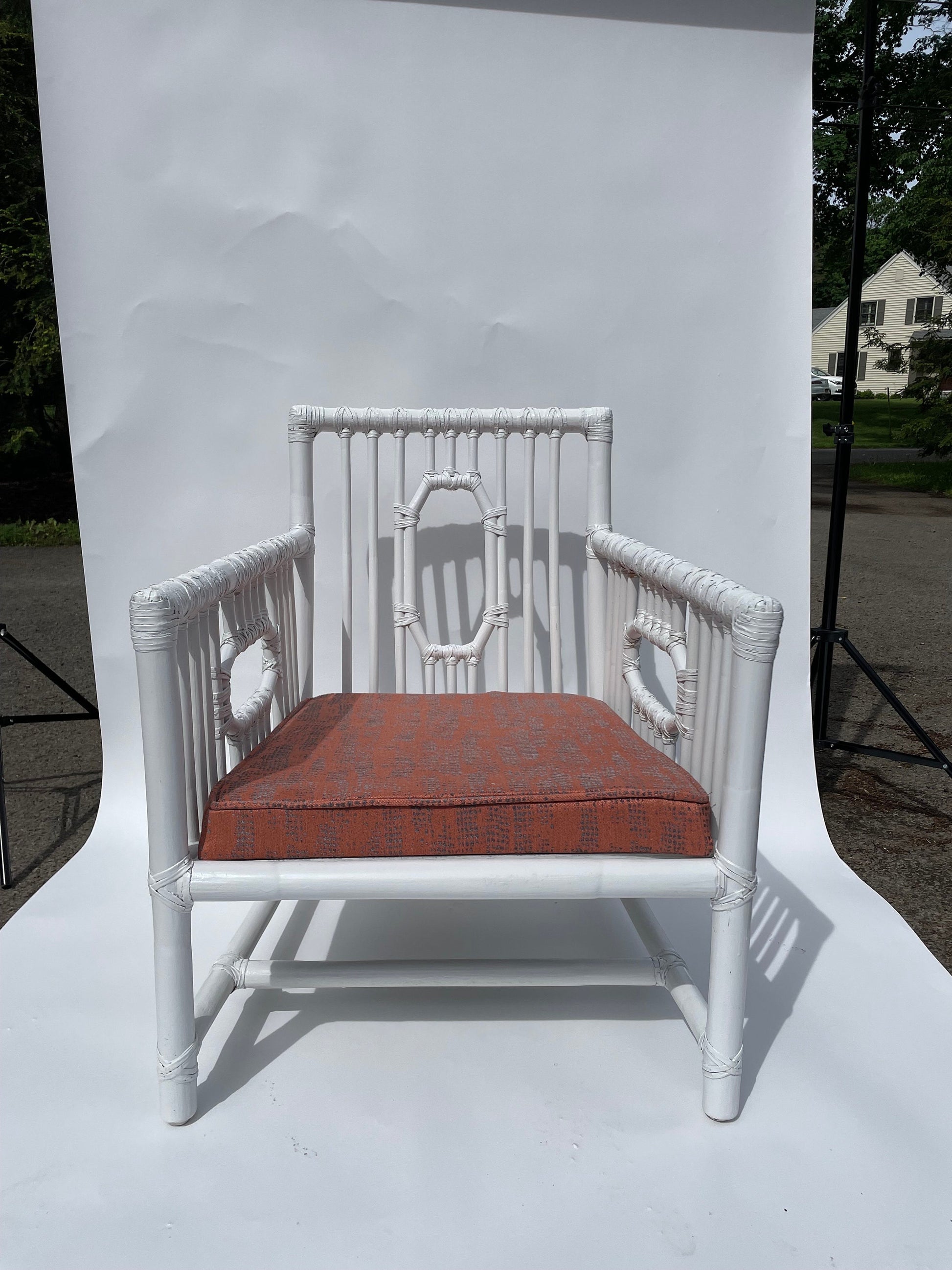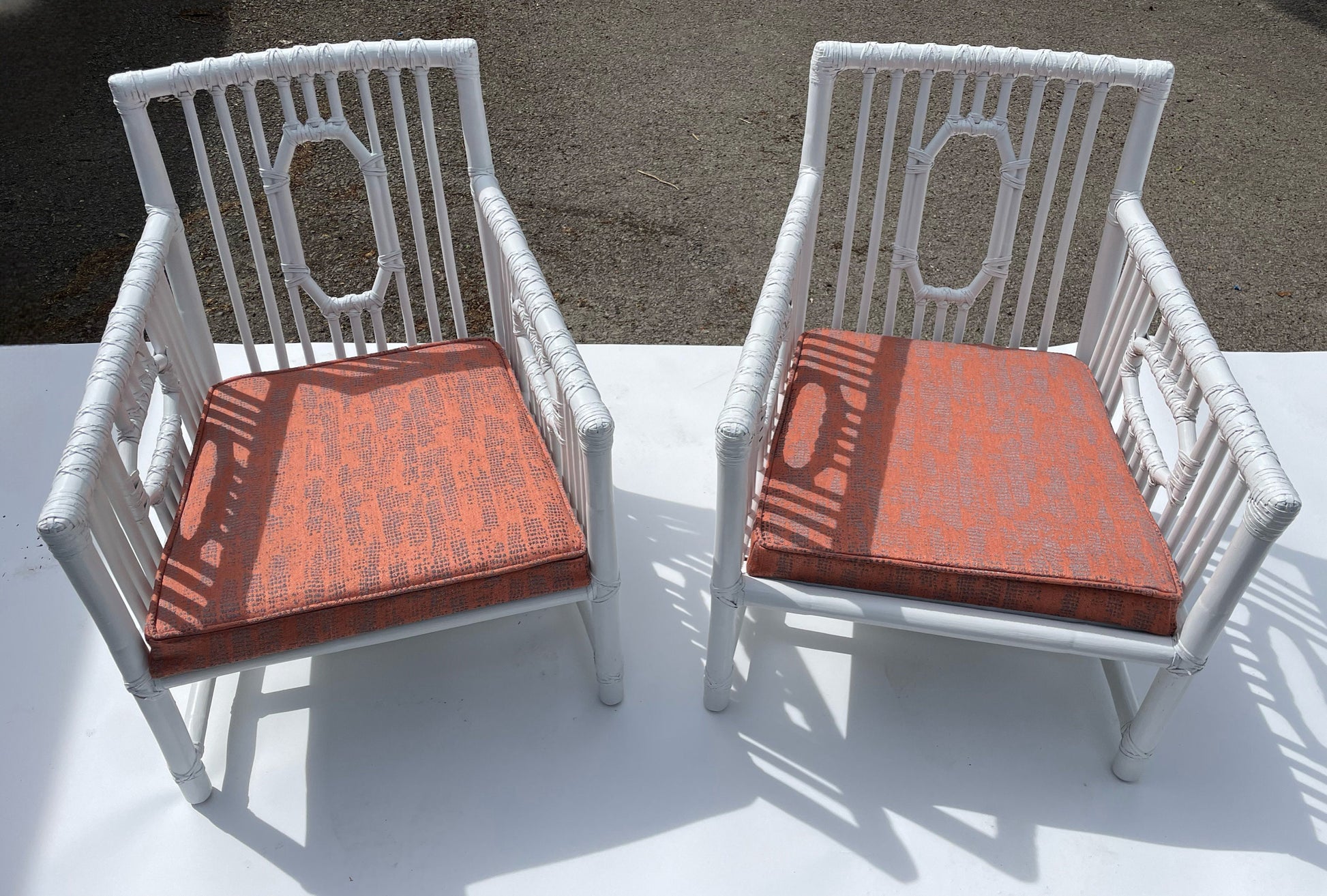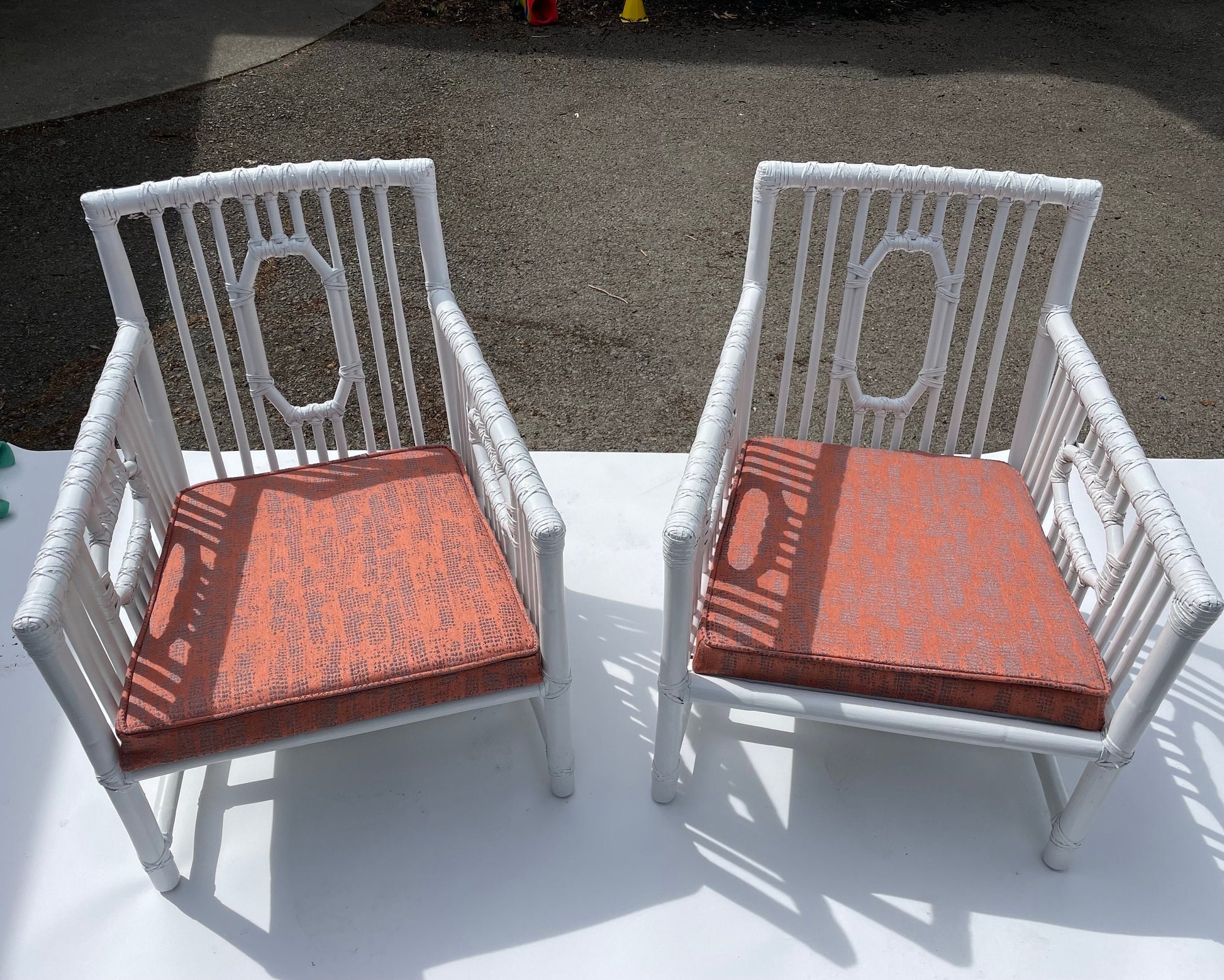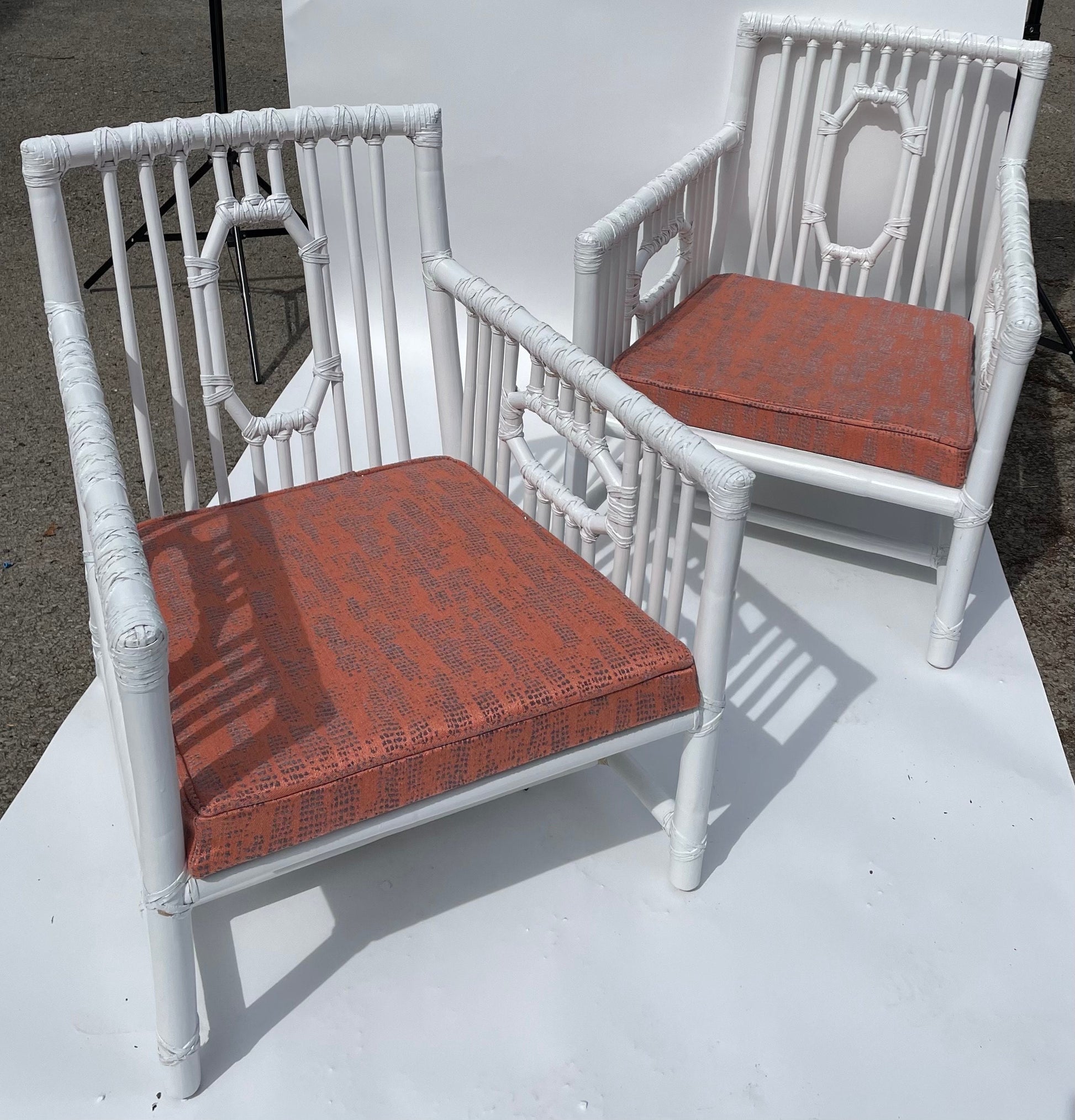 Pair Vintage McGuire Patio Chairs Rattan Armchairs White Vintage Palm Beach Patio Chairs White Rattan Chairs