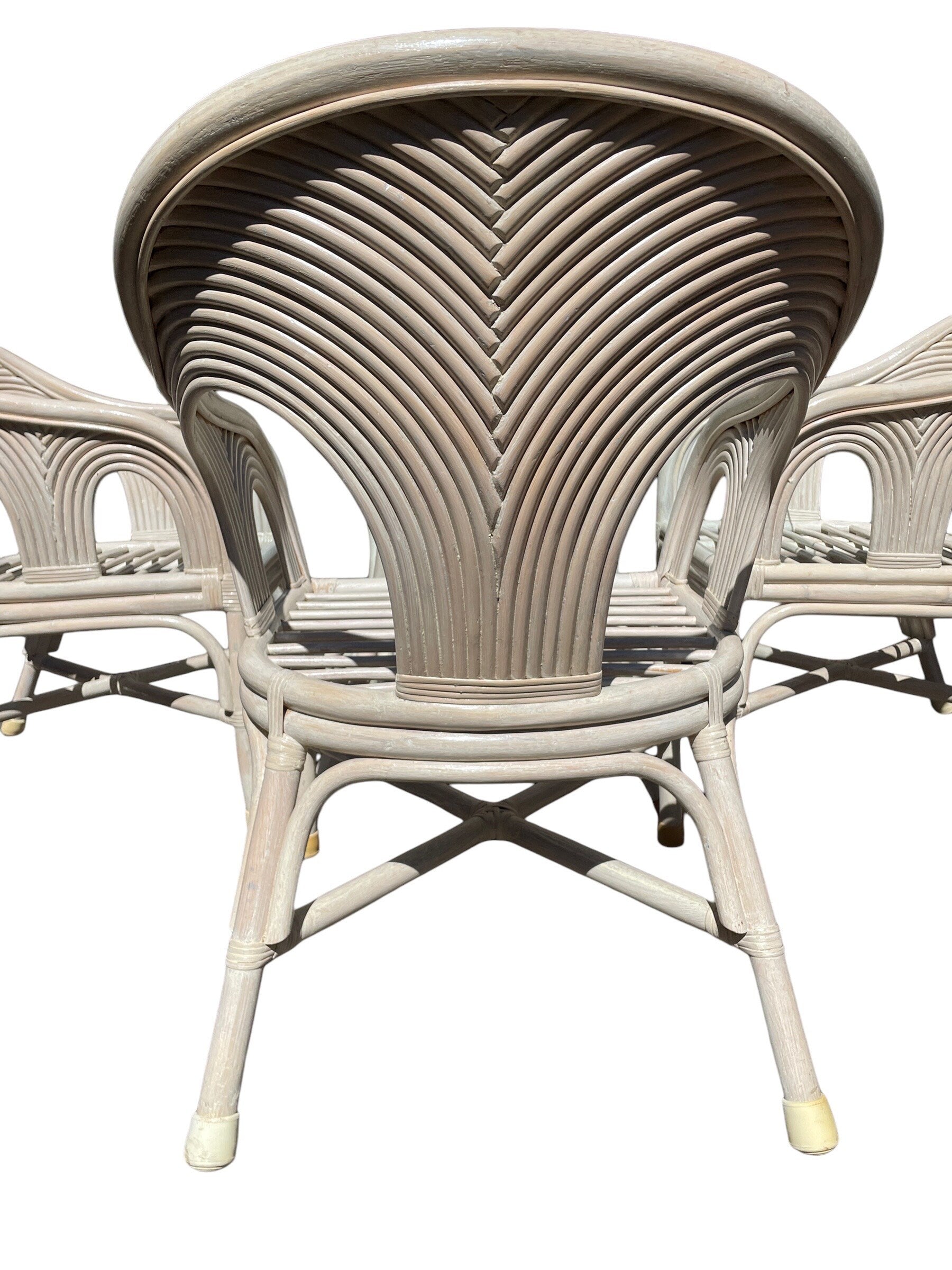 Vintage Dining Set Mid 20th Century Pencil Reed Cerused Rattan Dining Set in the Style of Gabriella Crespi