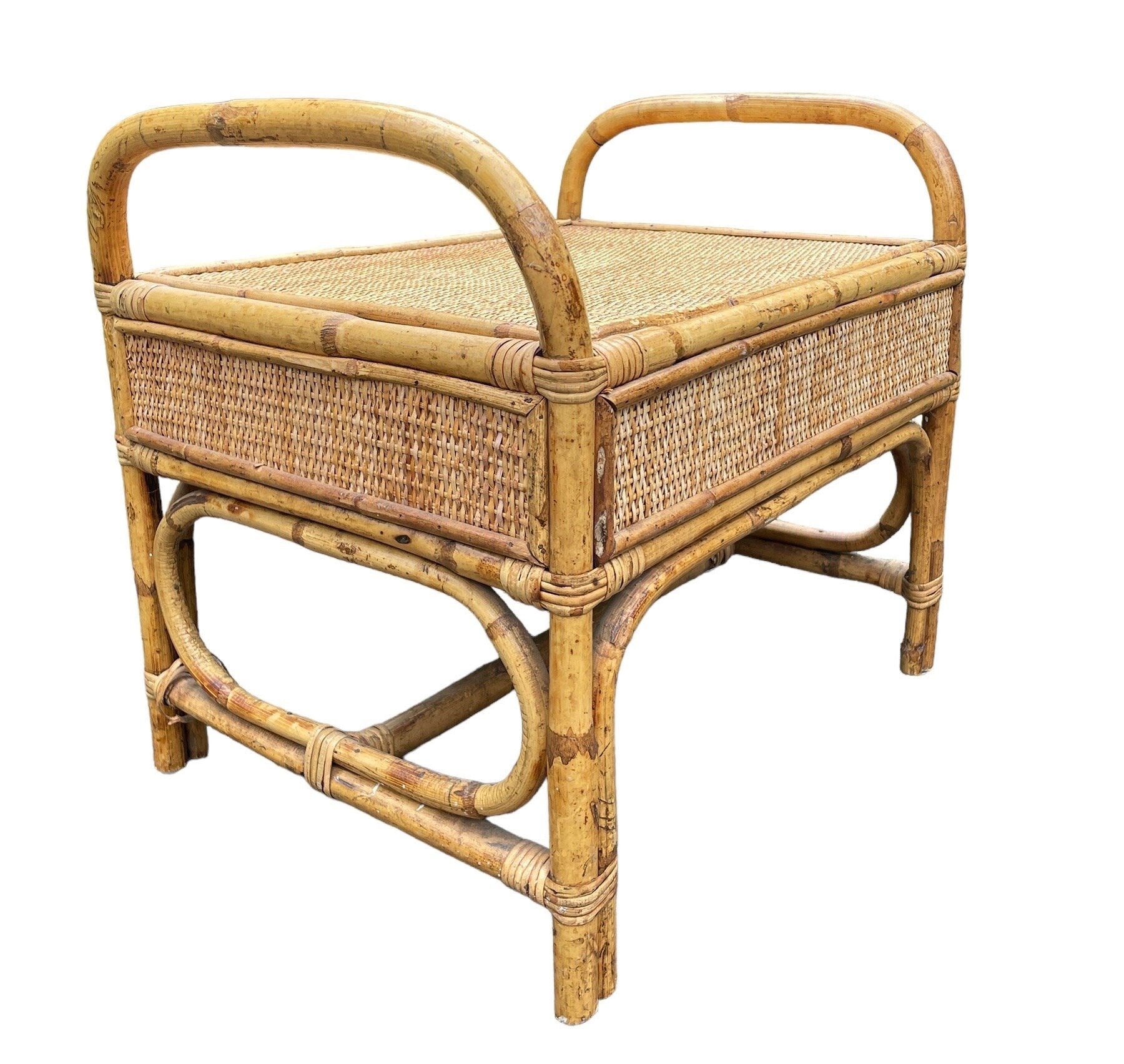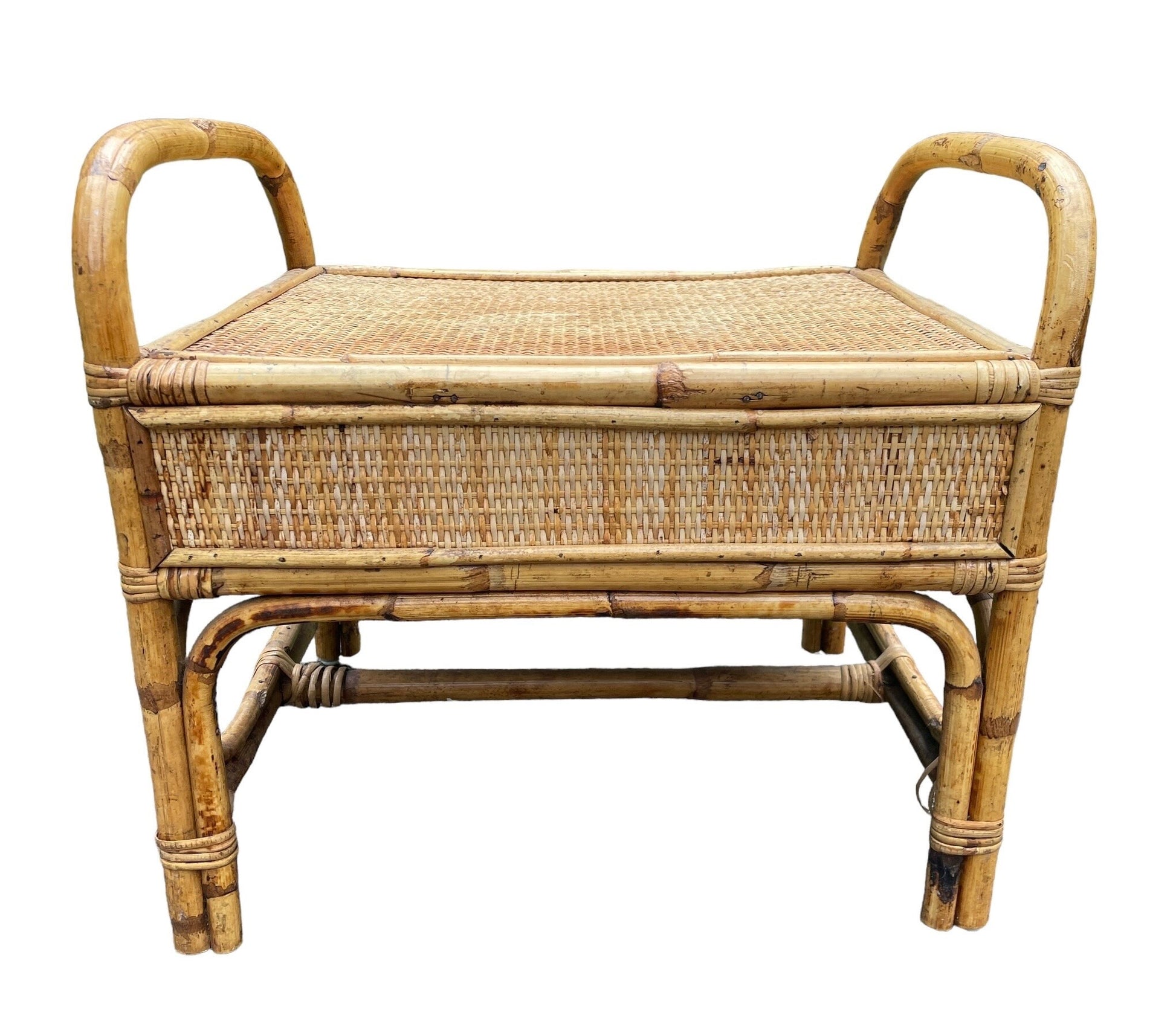 Vintage Rattan Ottoman Accent Table Lakehouse Furniture Beach House Furniture End Table Ottoman